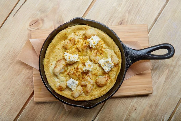 ШАГ 2 Отдельно приготовить омлетную смесь, для этого венчиком смешать яйца с молоком. Залить капусту, посыпать специями и тофу. Запечь в духовке.