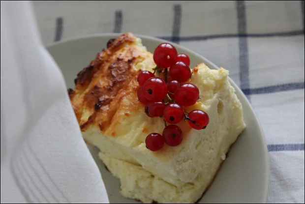 ШАГ 4 Соединить творожную массу с белками, аккуратно перемешать (кулинарным шпателем или рукой) и выложить в смазанную маслом форму.