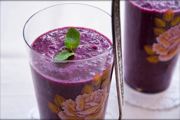 ШАГ 2 Утром измельчить ягоды в блендере с сахаром. Отложить несколько ложек ягодного пюре для подачи (можно вместо ягод с сахаром использовать любой готовый джем). В блендер к ягодам добавить промытую гречку, замороженный банан, молоко и кардамон. Пюрировать до гладкой нежной консистенции. Такую кашу можно хранить в холодильнике 1-2 дня.