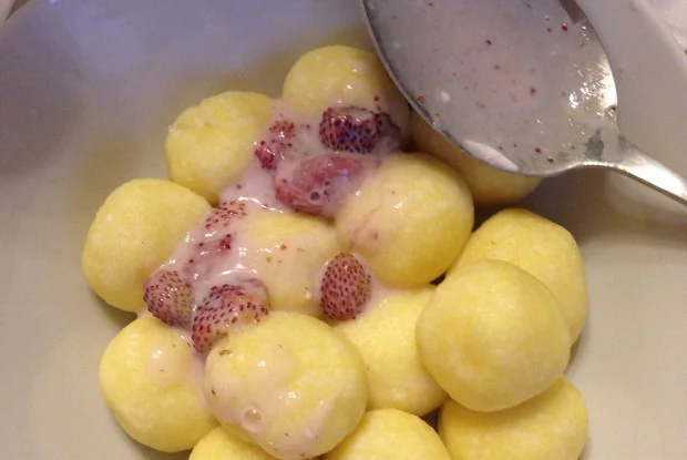 ШАГ 9 Выложить творожные шарики в кипящую воду и варить 2–3 минуты, пока не всплывут, — после этого сразу вынуть.