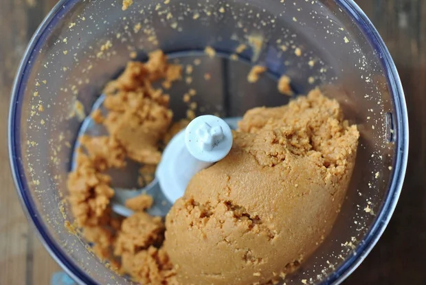 ШАГ 2 В блендере смешать арахис и соль за тем добавить мед.