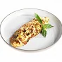 ШАГ 3 Влить яйца, жарить 3–4 минуты, затем свернуть втрое, внутри омлет должен быть жидковатым, а снаружи румяным.