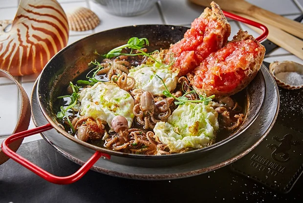 ШАГ 5 Подавать с ароматной чиабаттой из хоспера, смазанной томатами, украсить микрозеленью.