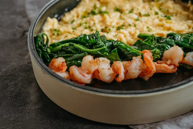 Ингредиенты для приготовления Скрэмбл со шпинатом и креветками: