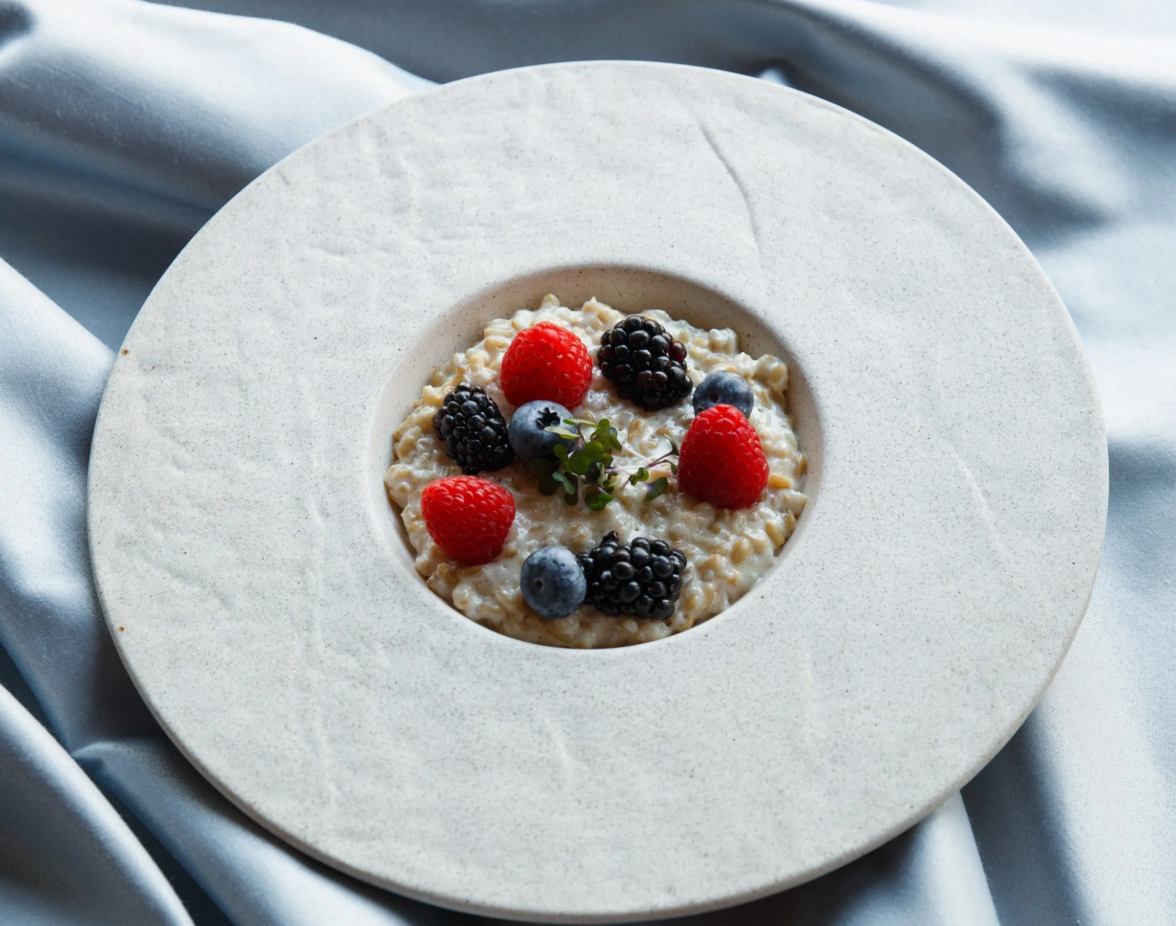 ШАГ 3 Выложить на тарелку. Декорировать свежими ягодами и микрозеленью.