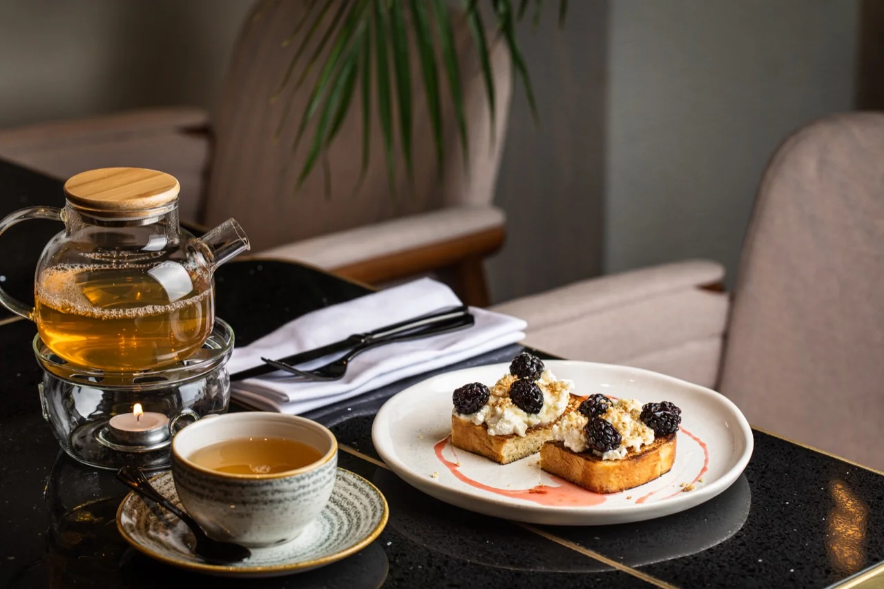 ШАГ 3 Сверху полить клубничным вареньем, украсить свежей ежевикой и посыпать кунжутом.