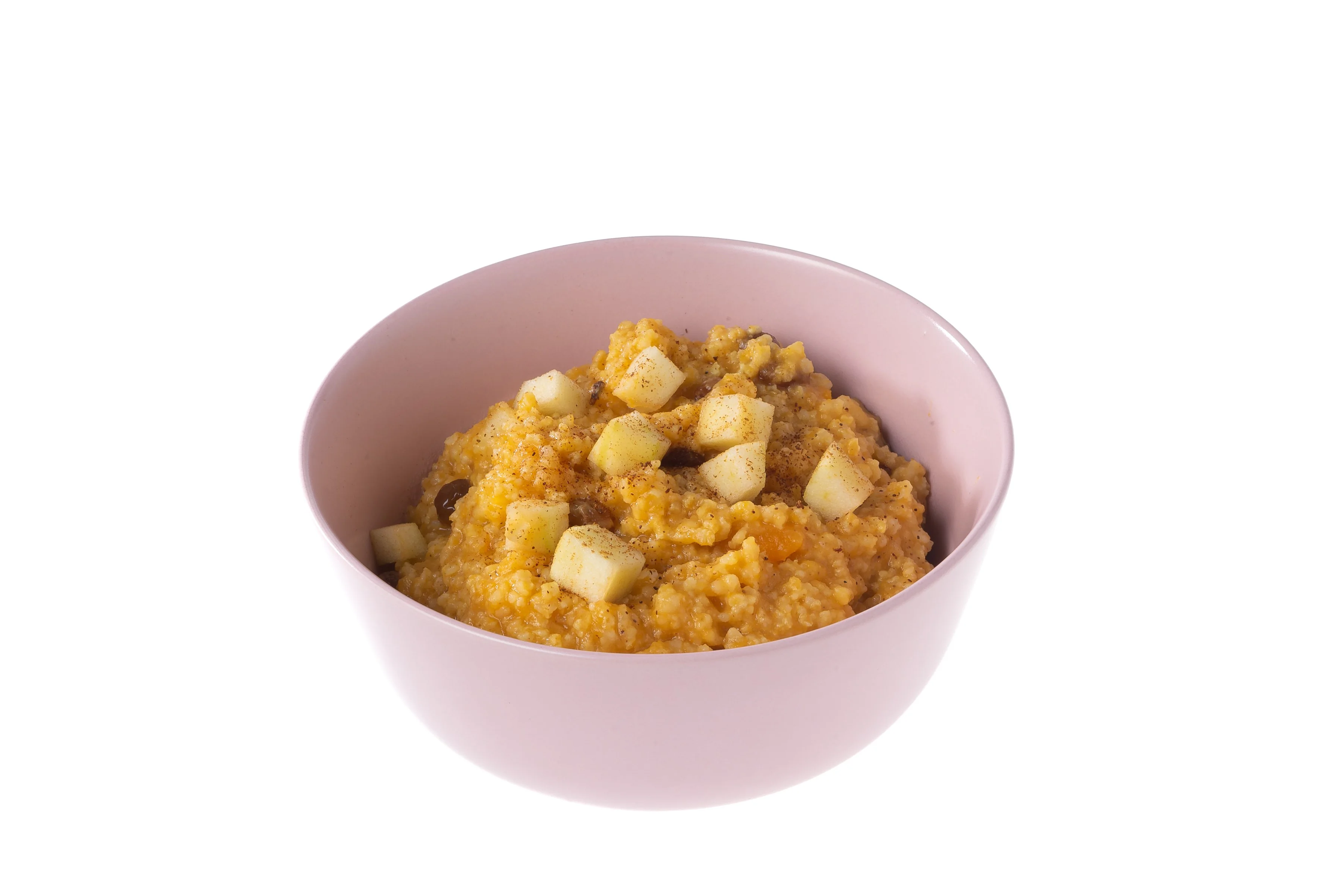 ШАГ 7 Яблоко очистить от кожуры и нарезать мелким кубиком. Вмешать яблоко в готовую кашу и сразу же подавать.