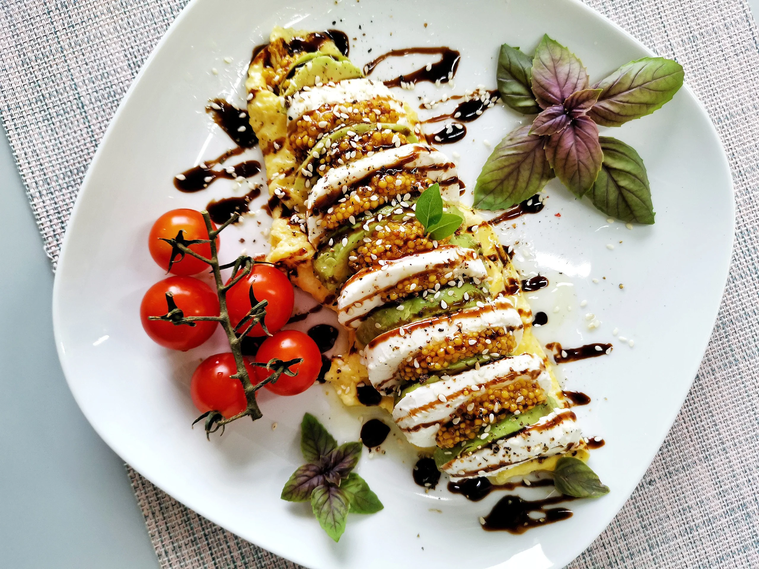 Скрэмбл из перепелиных яиц с авокадо и моцареллой