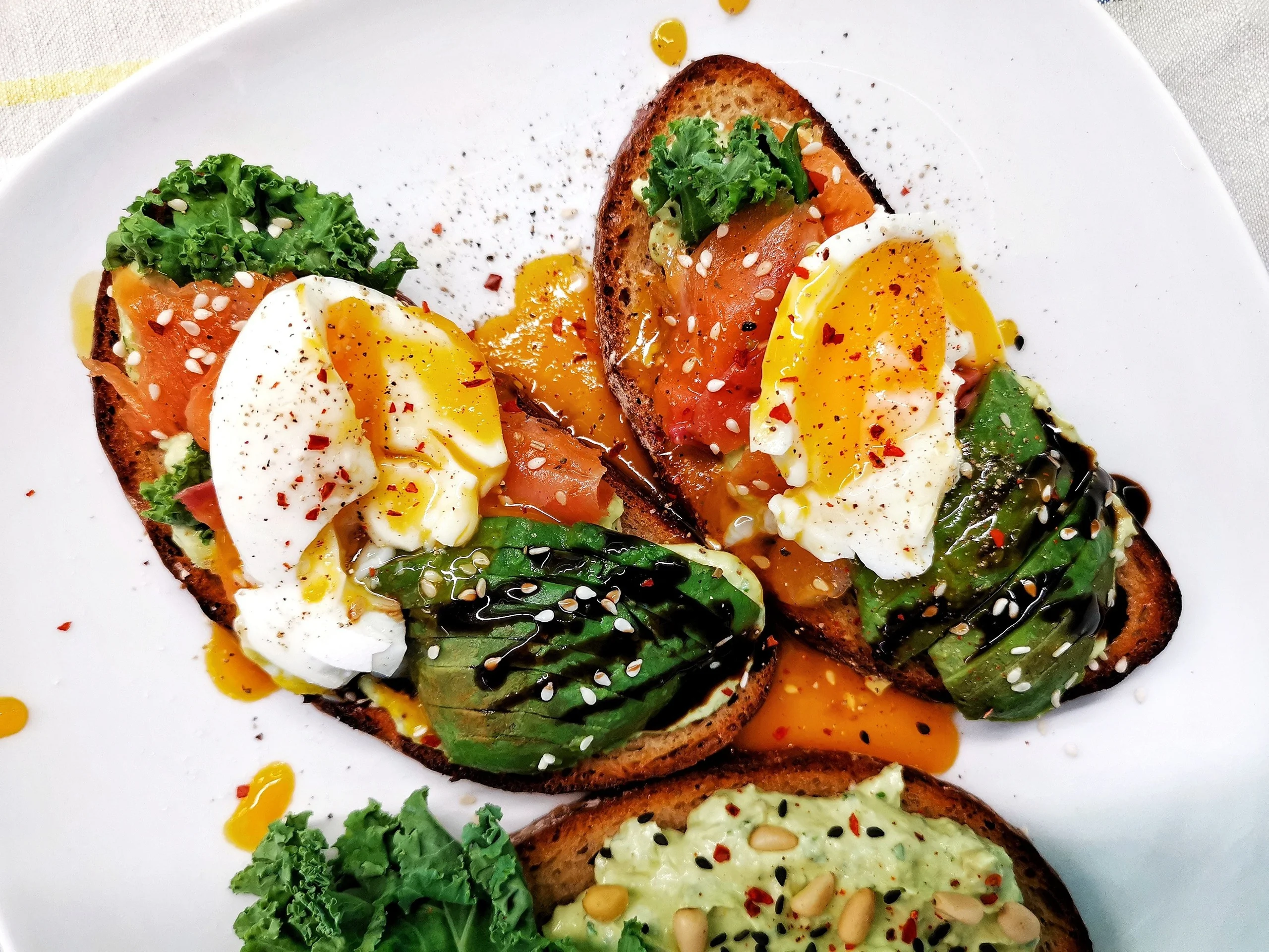 Ингредиенты для приготовления Брускетты с авокадо, семгой и яйцом пашот:
