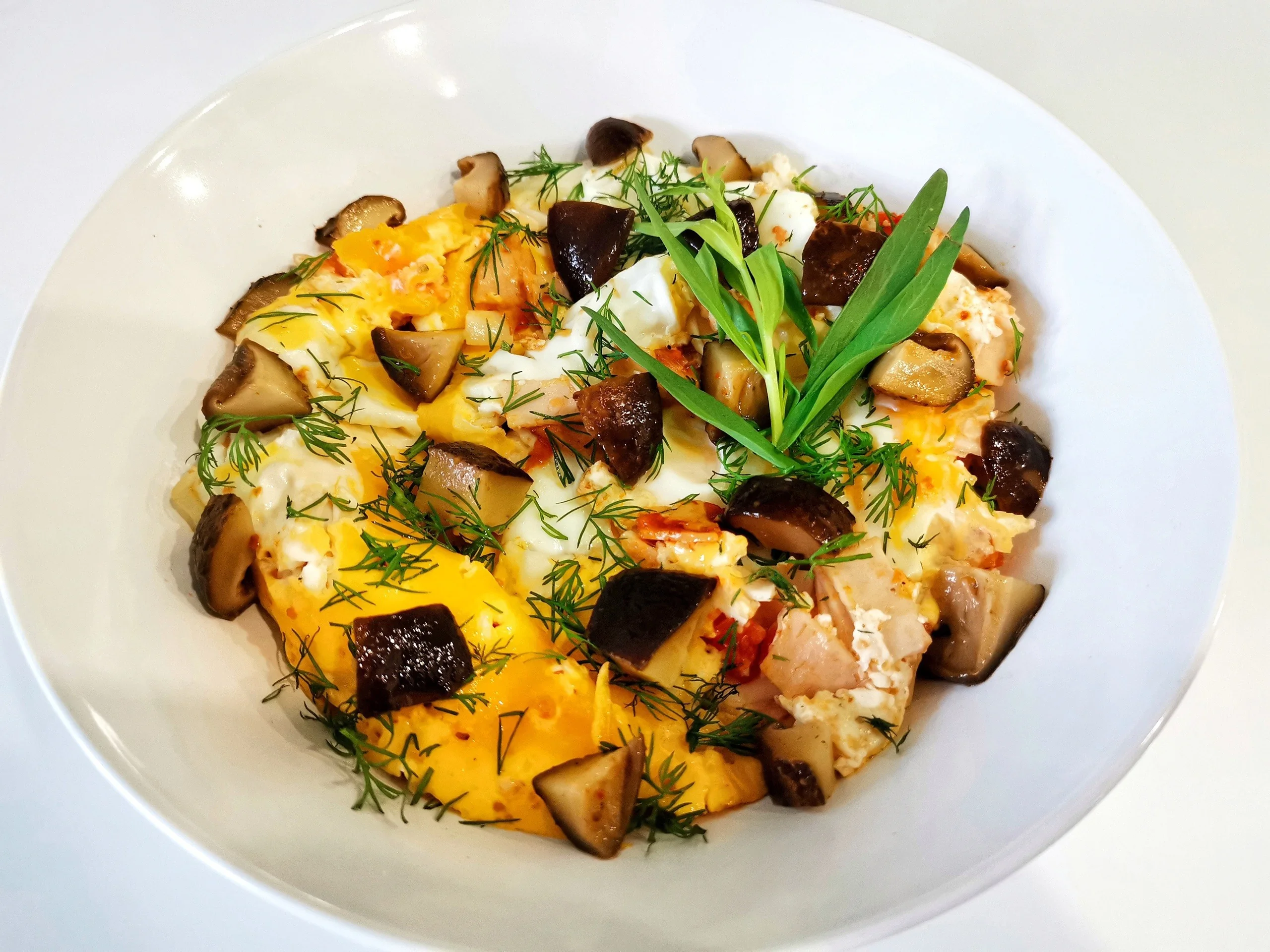 Ингредиенты для приготовления Яичница с маринованными грибами:
