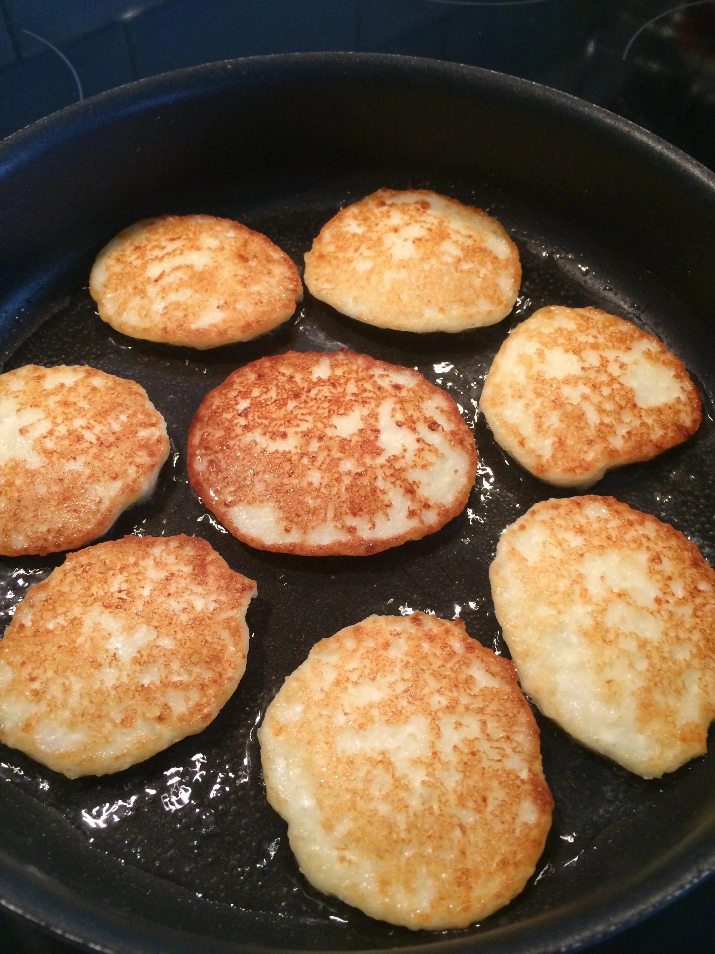 ШАГ 2 Обжаривать с двух сторон на очень медленном огне — в противном случае сырники не прожарятся внутри.