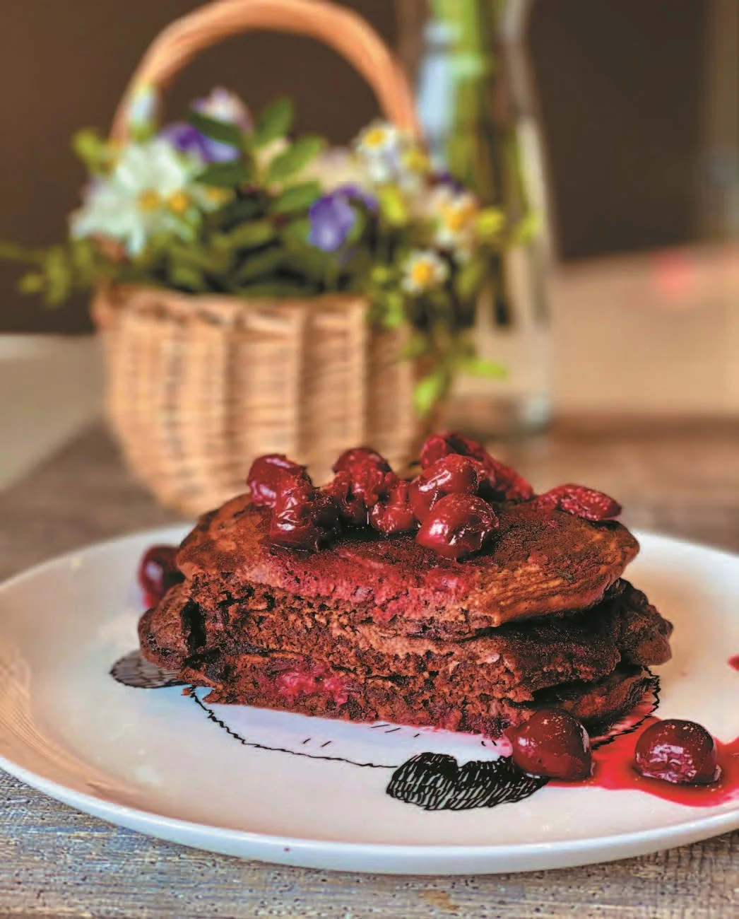 Шоколадные панкейки с вишней