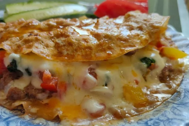Ингредиенты для приготовления Лепешка с фаршем и овощами на завтрак: