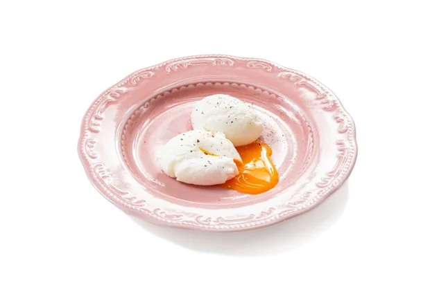 ШАГ 9 Выложить яйца пашот на тарелку, посолить и поперчить.