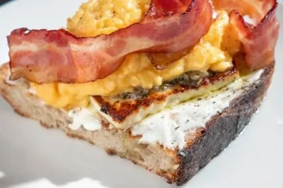 ШАГ 17 Далее положить вокруг скрембла бекон. Подавать.