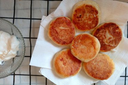 ШАГ 14 Сырники как у бабушки готовы. Подавать их со сметаной.