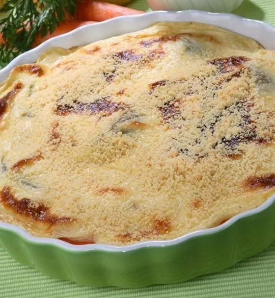 ШАГ 2 Всю сухарную массу хорошо размешать, половину ее положить на сковородку, смазанную маслом, затем положить морковный фарш, закрыть остальным количеством сухарной массы и запечь в духовом шкафу.
